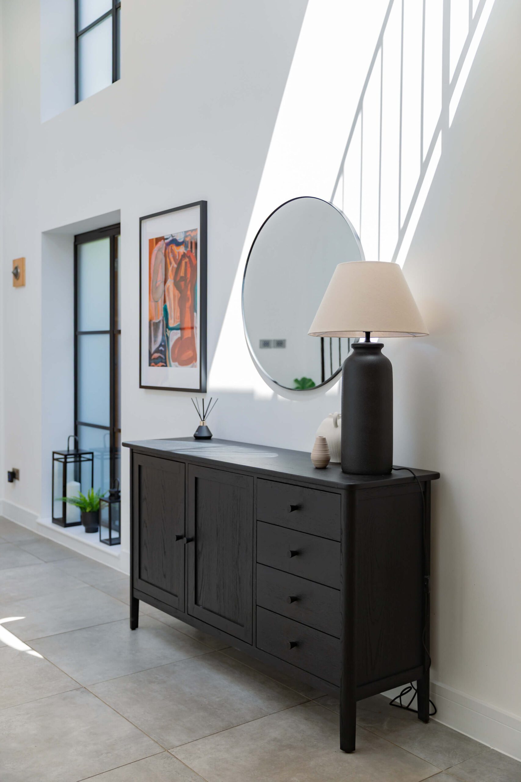 Key project elements: Luxury yet cozy vibe; working with existing architecture; fully sourced, staged, and styled